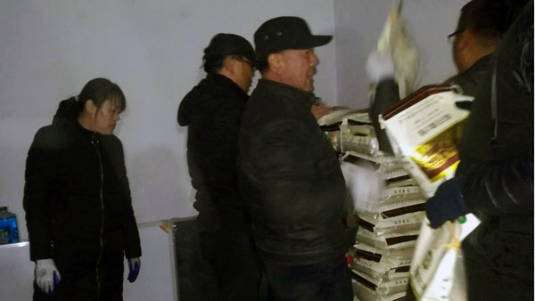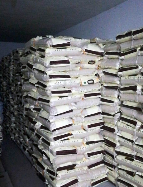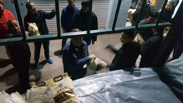 合理分組、各負(fù)其責(zé)、整齊有序,大米在工作人員手中傳遞,心手相傳的不僅僅是大米,更是信心和意志。